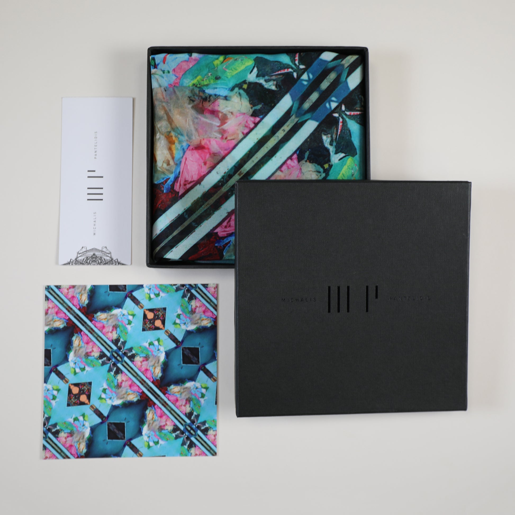 Crafted from 100% Twill Silk and made in Greece, this scarf transforms personal photographic documentation of Nicosia’s urban wastelands into wearable art.